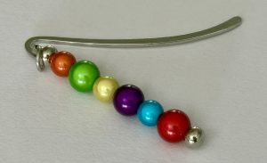 The silver page marker sits neatly inside your book, whilst the rainbow coloured Glowbeads rest along the book spine.